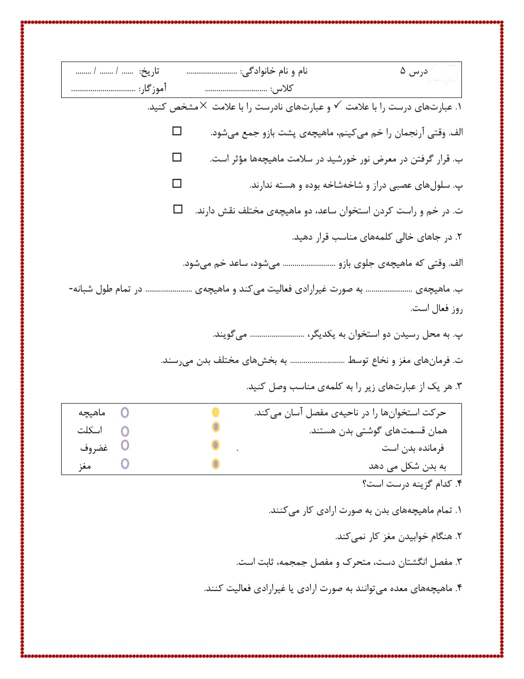در ادامه کاربرگ تمرینی درس 5 در اختیار شما قرار دارد .