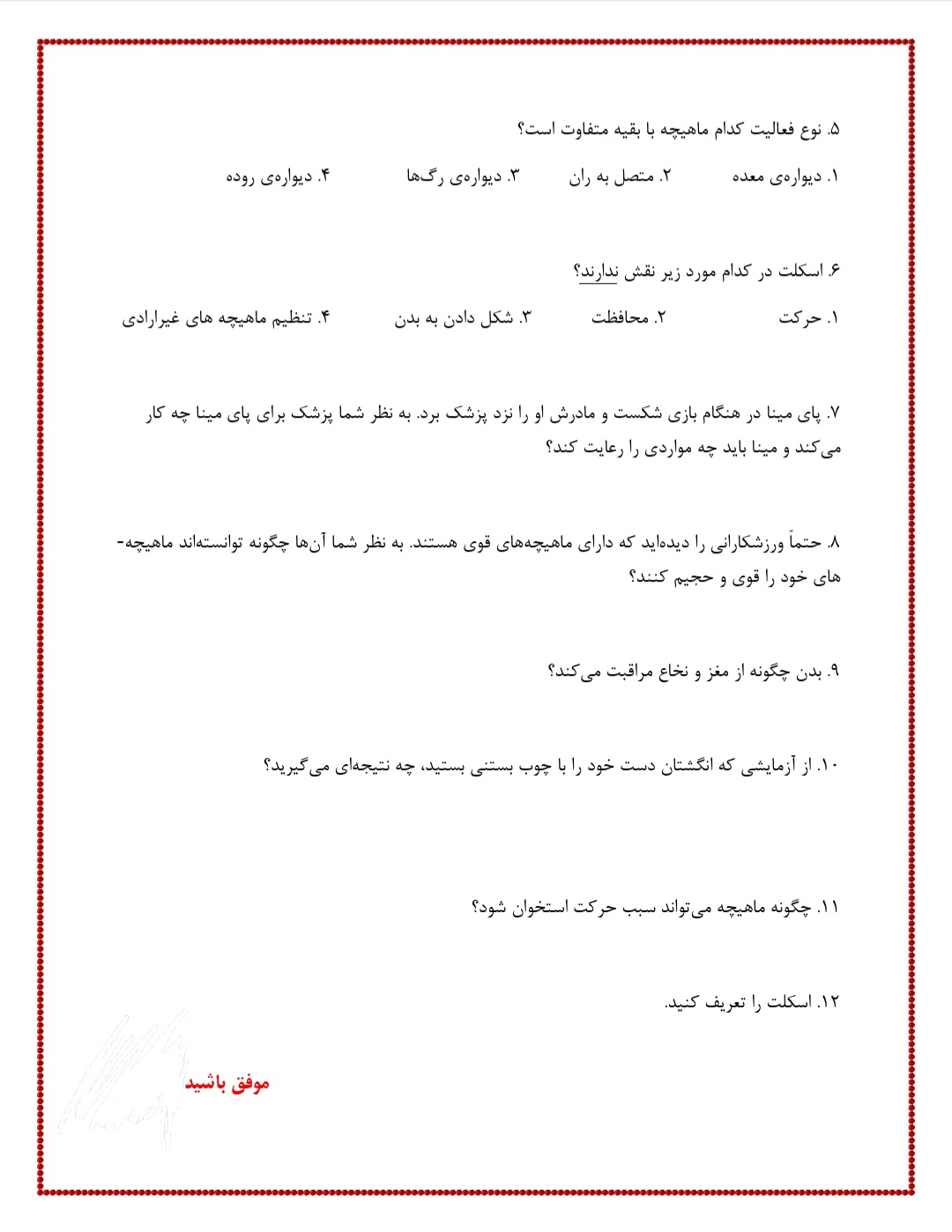 👌نکته 1 : در صورتیکه امکان پرینت دارید ،پرینت بگیرید .در غیر اینصورت شماره سوال را نوشته و فقط پاسخ را بنویسید .