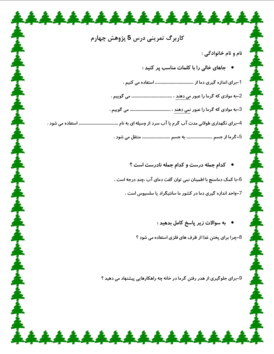 در ادامه کاربرگ تمرینی درس 5 در اختیار شما قرار دارد .