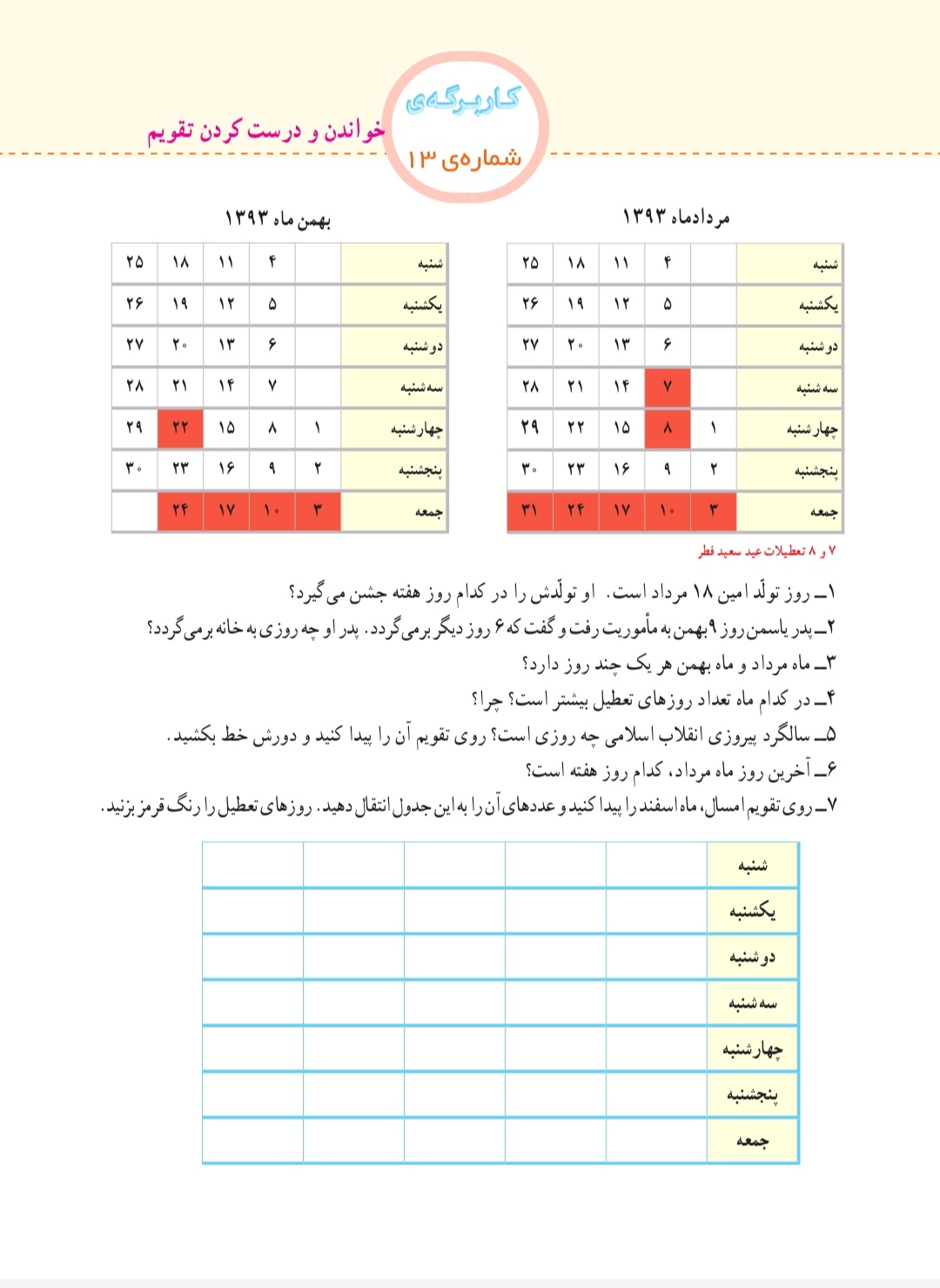 درس ۲۱ را مطالعه کرده و از متن درس ۵ سوال با پاسخ طرح کرده و کاربرگ ۱۳ را نیز پاسخ داده و تا ساعت ۱۲ ارسال کنید .